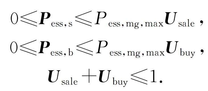 In the formula, Usale and Ubuy are the energy interaction state bit matrices between the system and the shared energy storage station during each scheduling period; Pess, mg, max are the maximum exchange power between the system and the shared energy storage power station.
